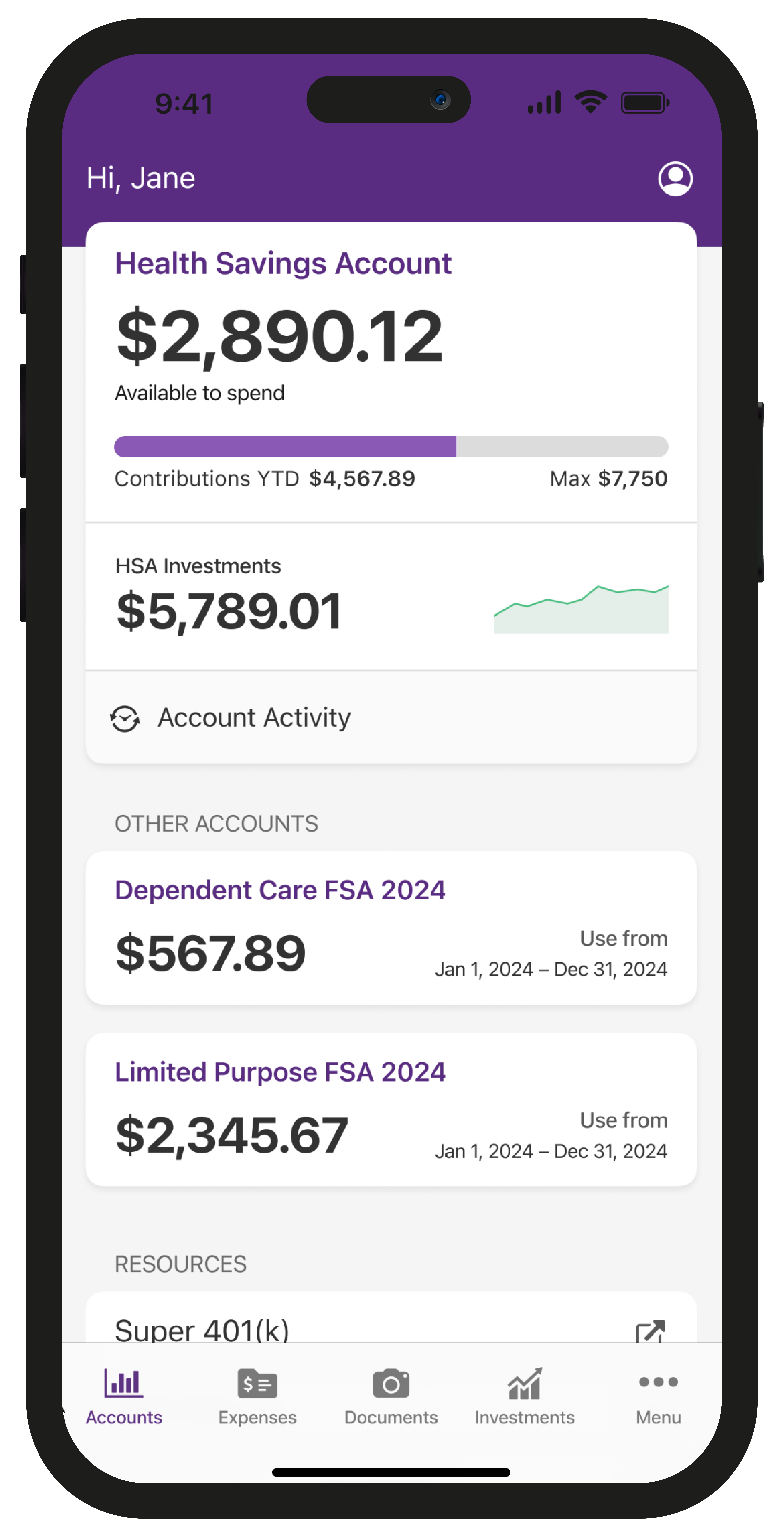 Enjoy at-a-glance views of account balances, spending, claims status, and more.