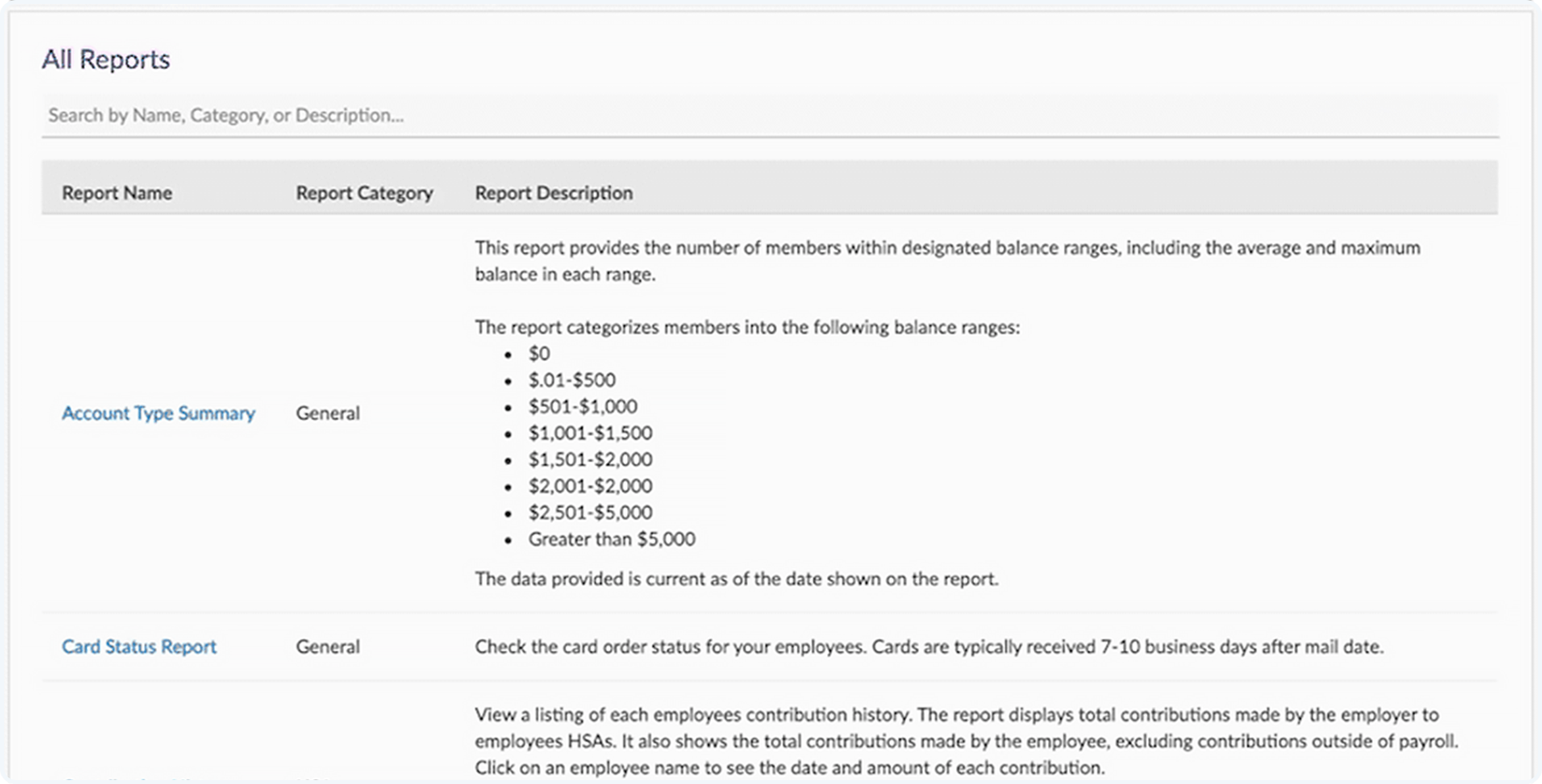 Pull status reports for card mailing, account activations, and potential over contributions.