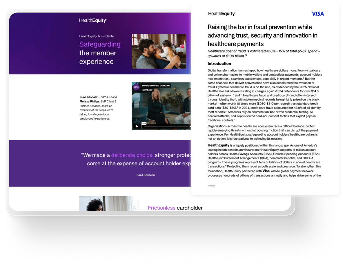 Safeguarding account holders’ healthcare dollars, personal and health information is foundational to achieving our mission. Great companies provide seamless security and deliver world class experience. Learn how we’re continuously advancing fraud detection and prevention in the Trust Center, and read about our top tier fraud prevention program developed in partnership with Visa.
